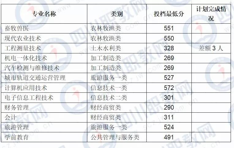 四川省2019年水利职业技术学院对口高职调档录取线