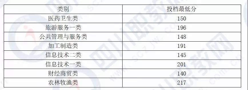 四川省2019年巴中职业技术学院对口高职调档录取线