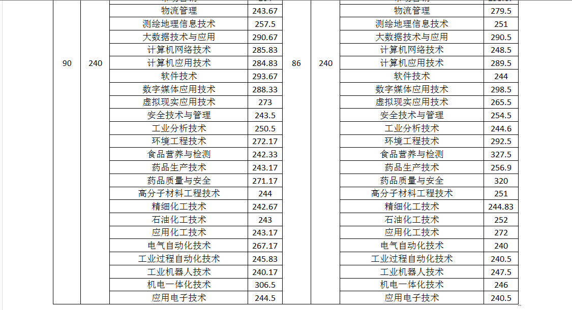 四川化工职业技术学院2020年单招最低调档线