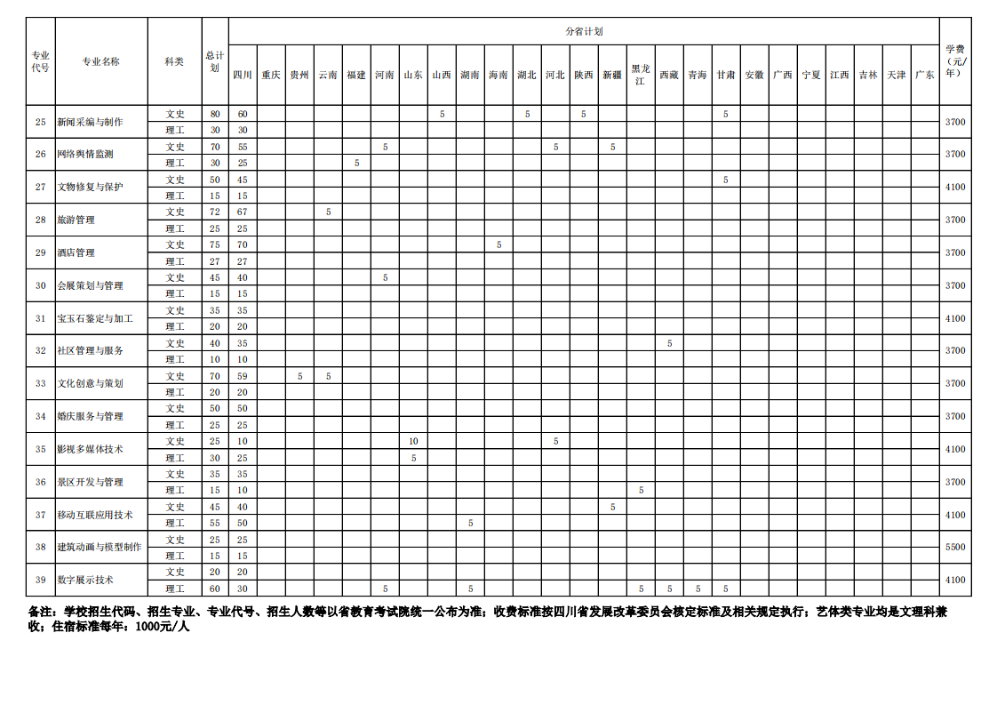 普高类院校代号:5187院校名称:四川艺术职业学院(公办)专业代号专业名称计划数收费标准06影视编导(温江校区)331000024公共文化服务与管理(温江校区)19480025文化产业经营与管理(温江校区)19480026图书档案管理(温江校区)14480027现代文秘(温江校区)17480028文物修复与保护(温江校区)10480029文物考古技术(温江校区)1048003