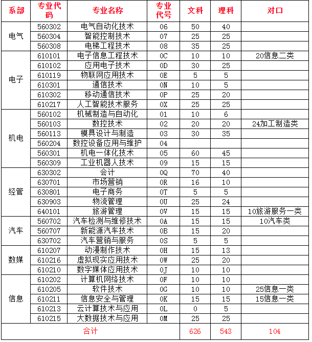 2020四川信息职业学院单招招生计划