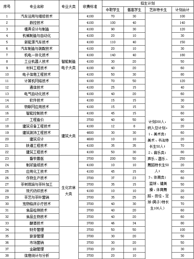 2020年四川建筑职业技术学院招生专业及计划