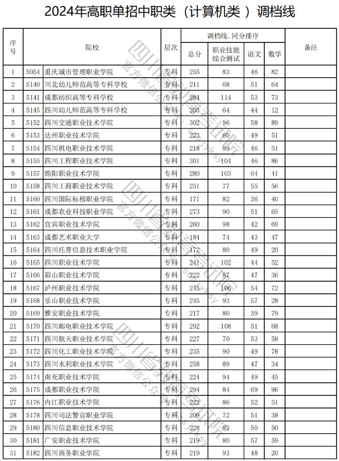 2024年四川高职单招中职类(计算机类)单招录取分数线