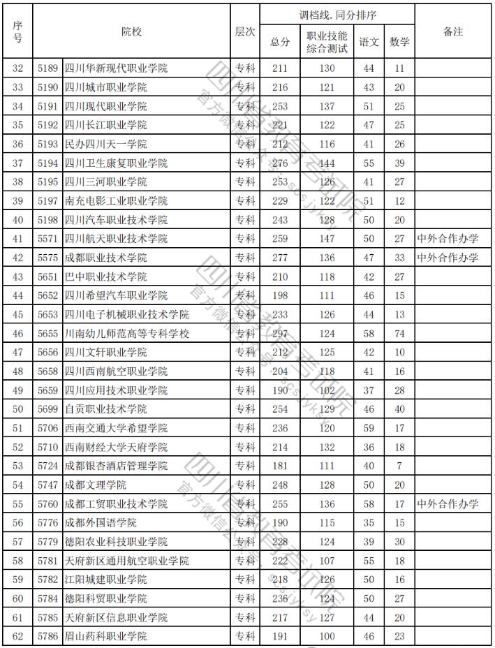2024年四川高职单招中职类(教育类)院校调档分数线