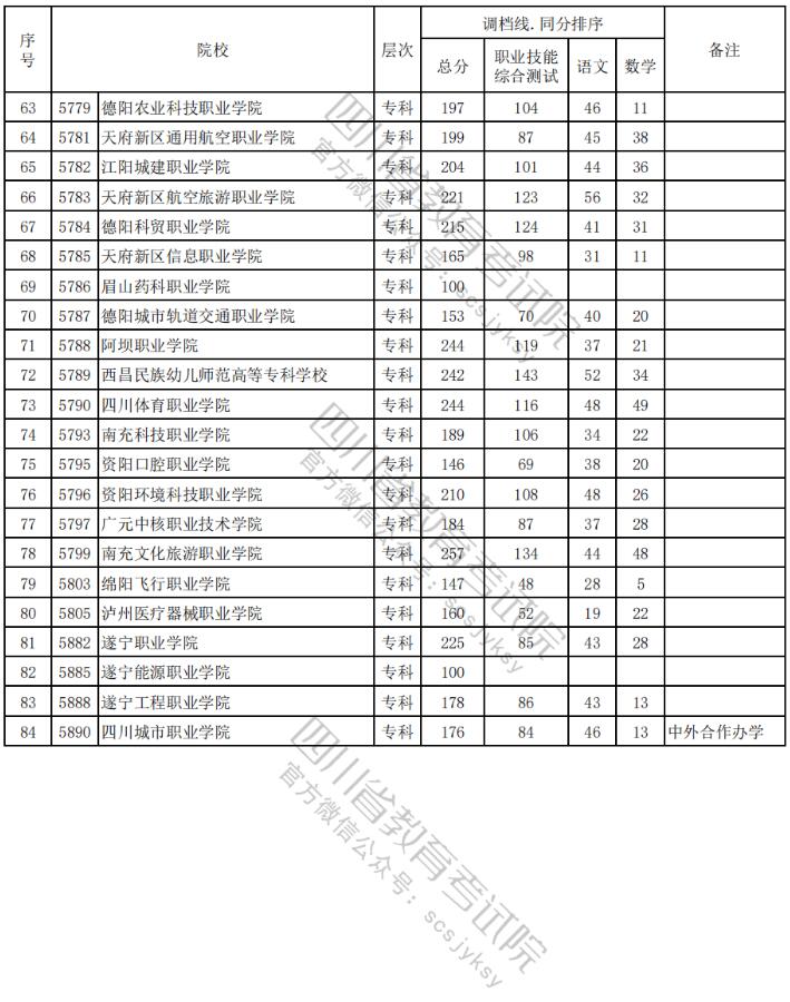 2024年四川高职单招中职类(教育类)院校调档分数线