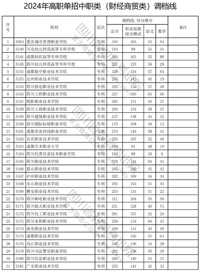 2024年四川高职单招中职(财经商贸类)院校调档分数线