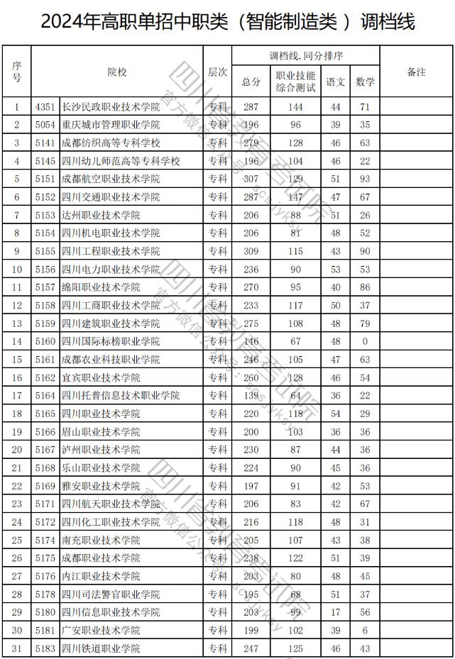 2024年四川高职单招中职(智能制造类)学院最低录取分数线