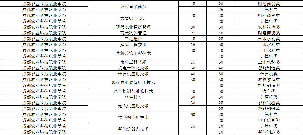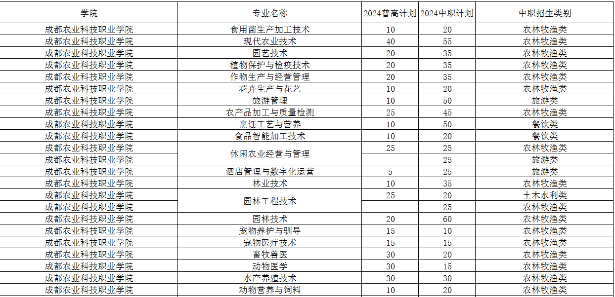 成都农业科技职业学院2024年单招专业及计划