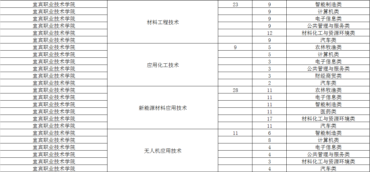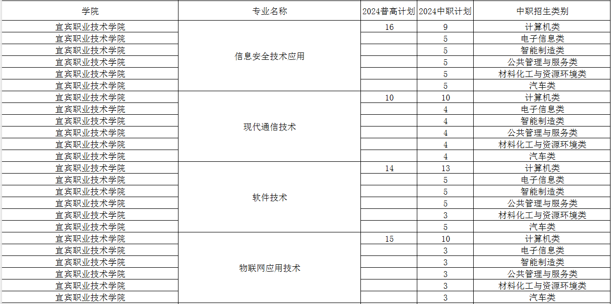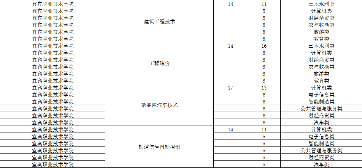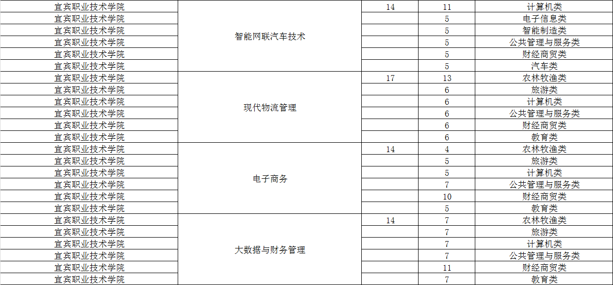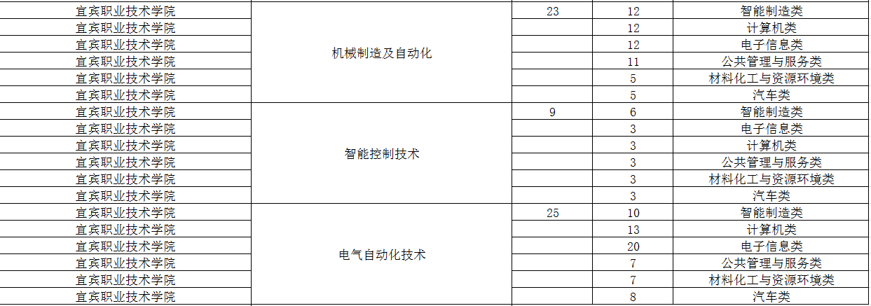 宜宾职业技术学院2024年单招专业及计划