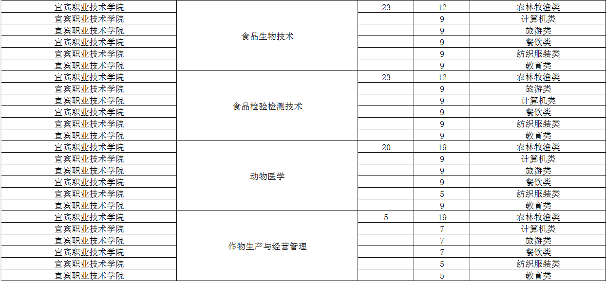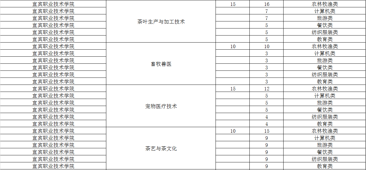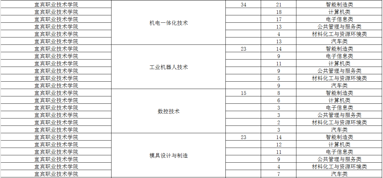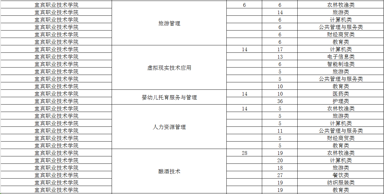 宜宾职业技术学院2024年单招专业及计划