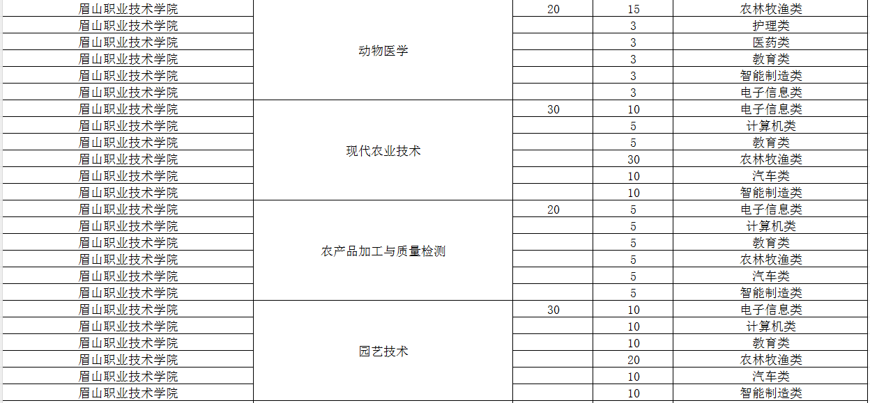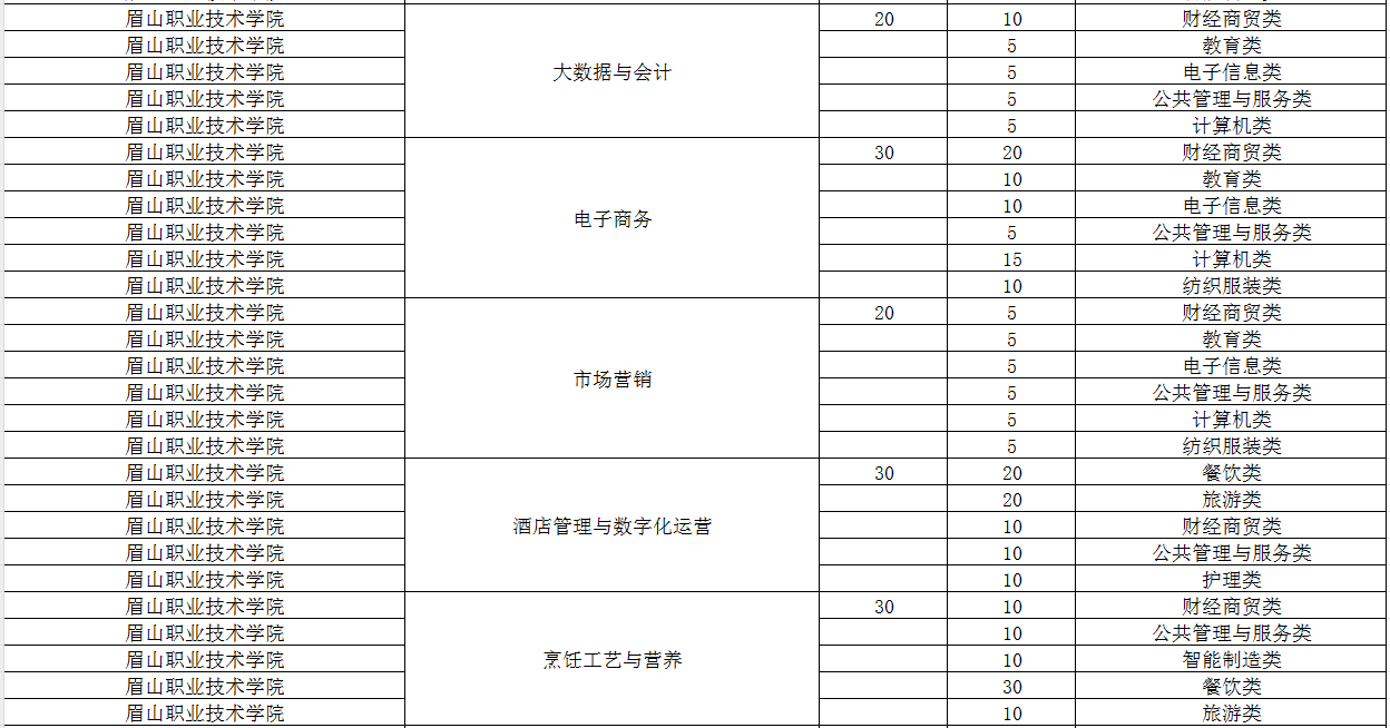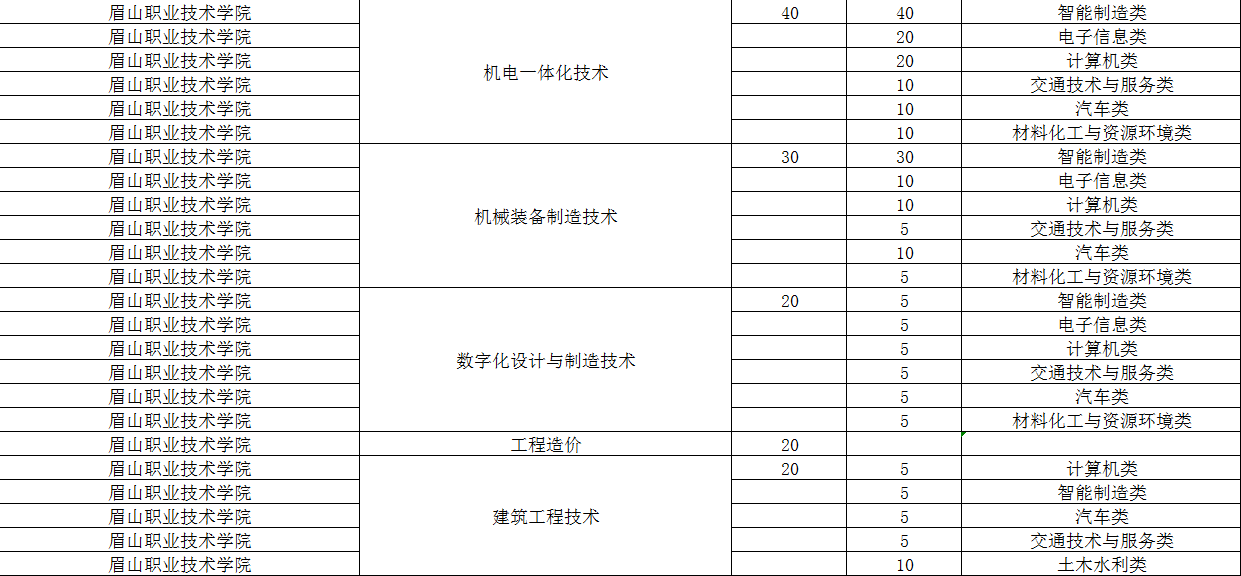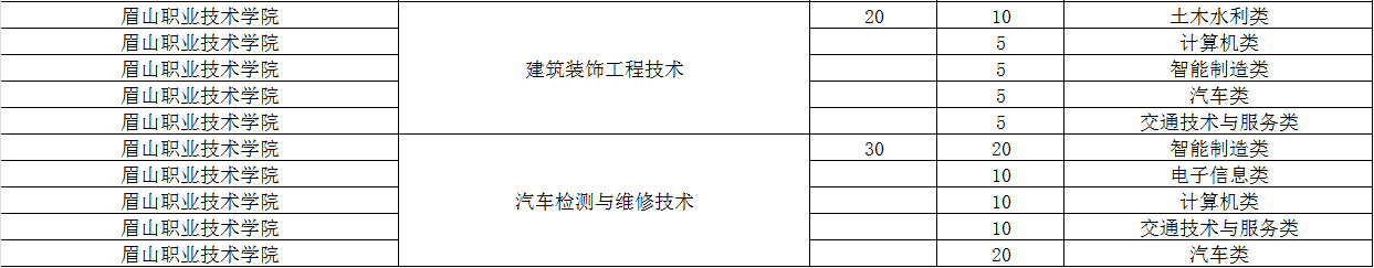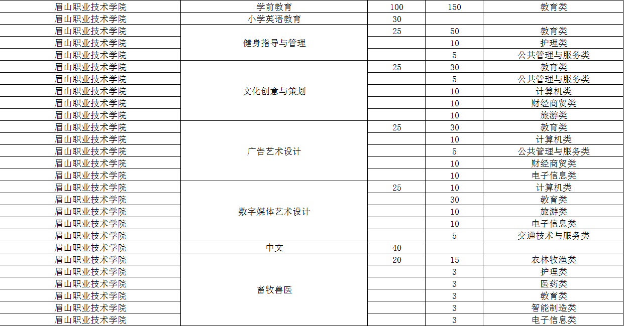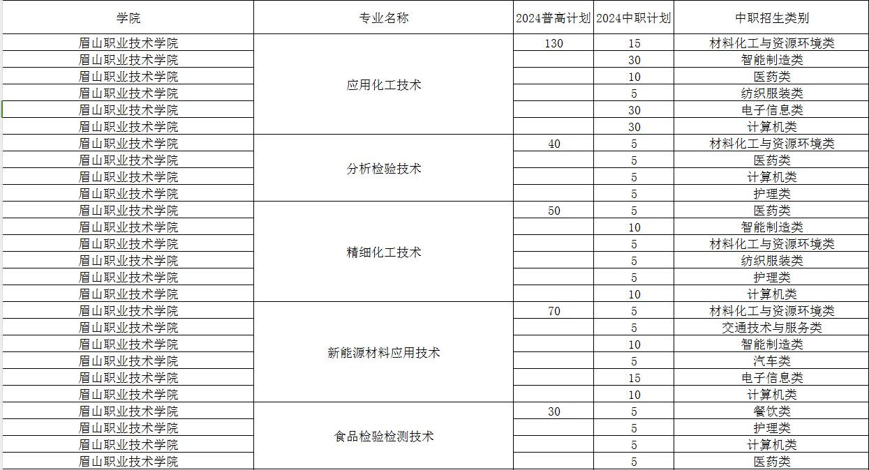 眉山职业技术学院2024年单招专业及计划