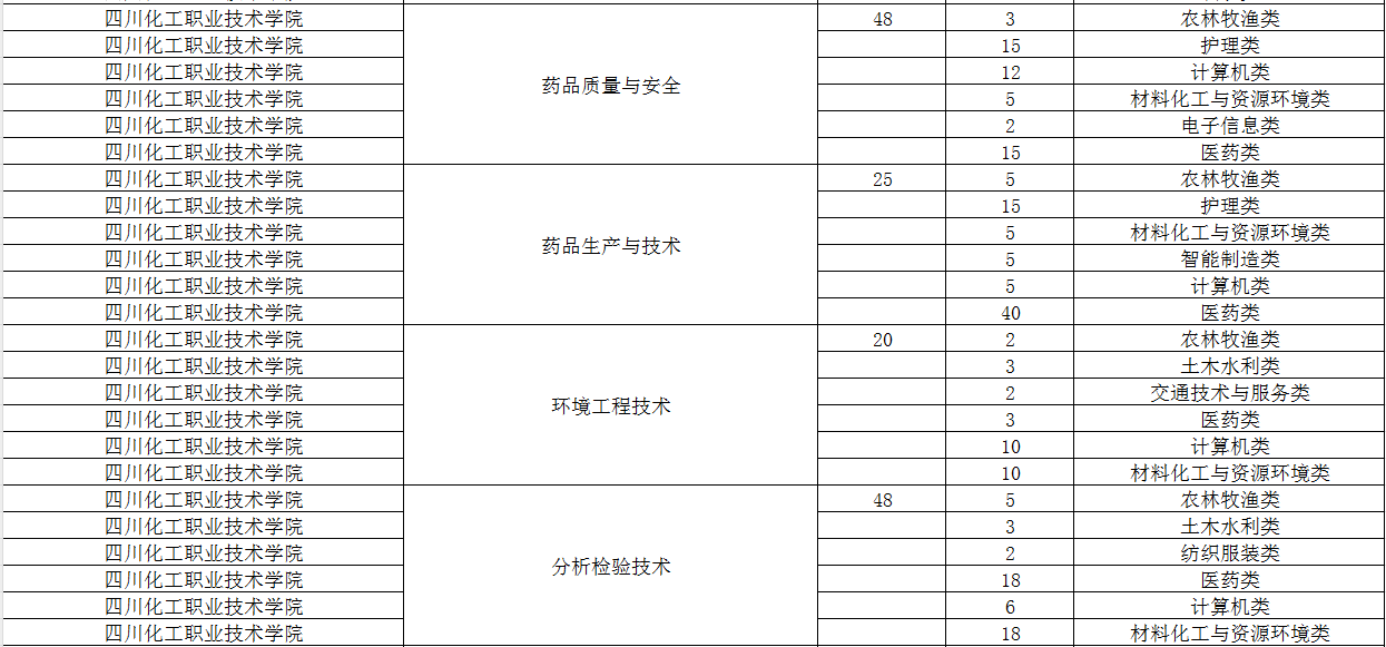 四川化工职业技术学院2024年单招专业及计划