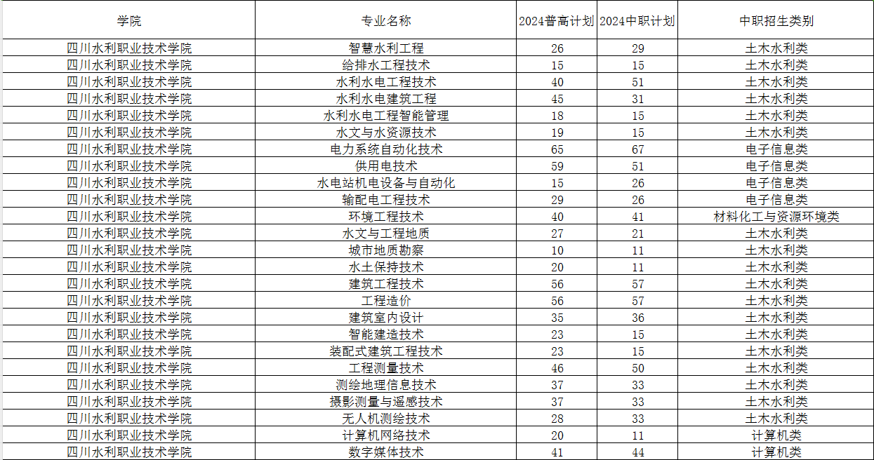 四川水利职业技术学院2024年单招专业及计划