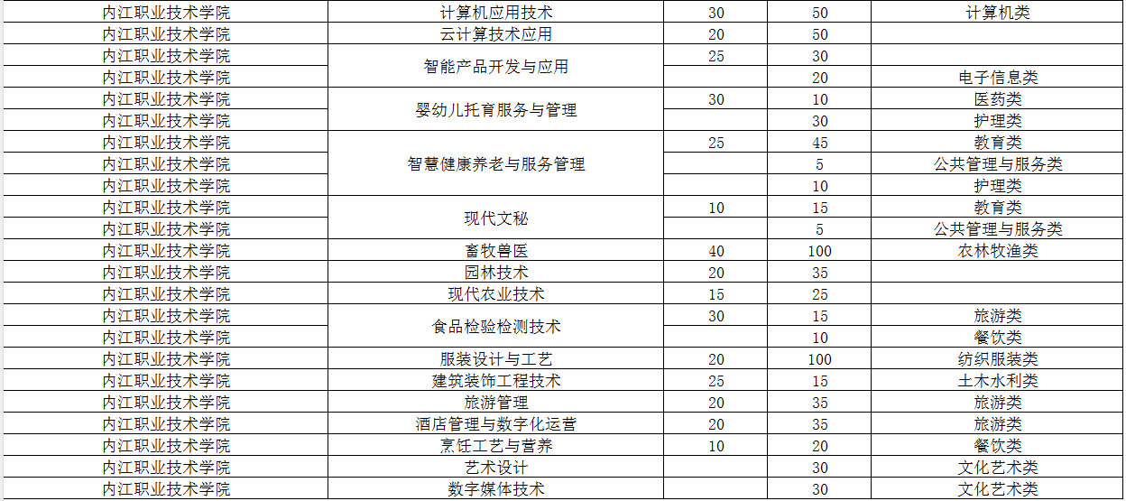 内江职业技术学院2024年单招专业及计划