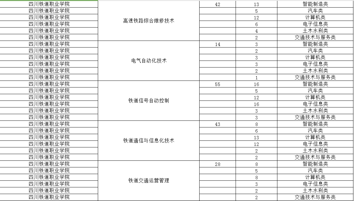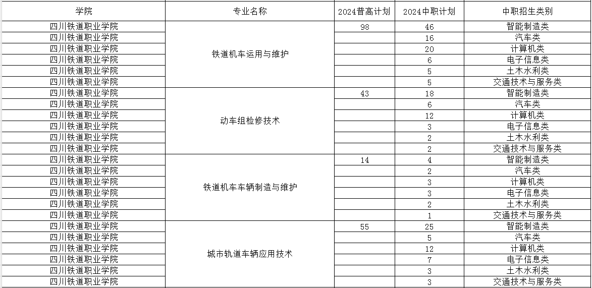 四川铁道职业学院2024年单招专业及计划