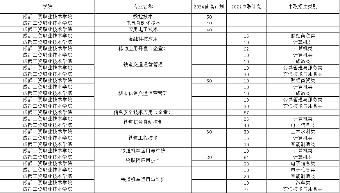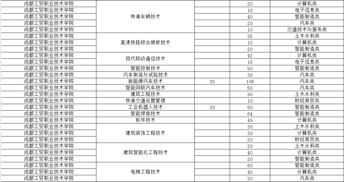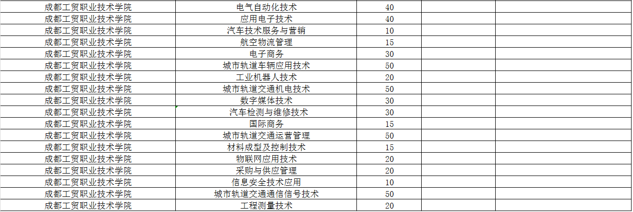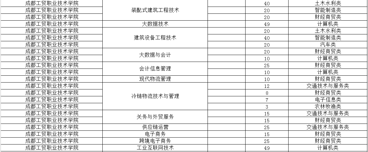 成都工贸职业技术学院2024年单招专业及计划