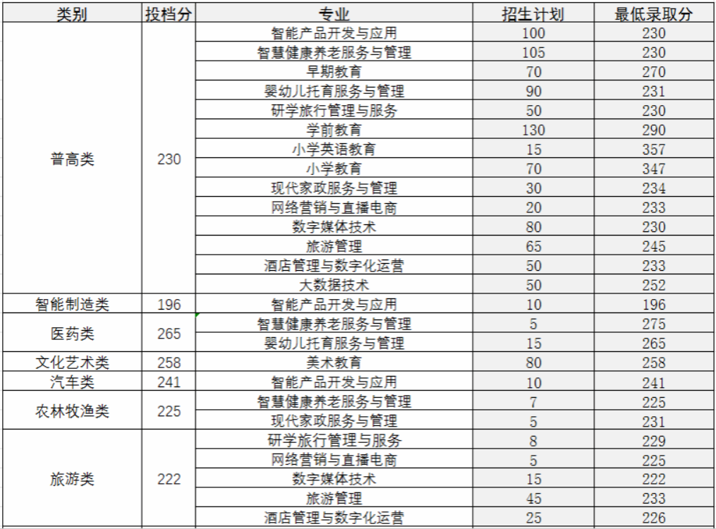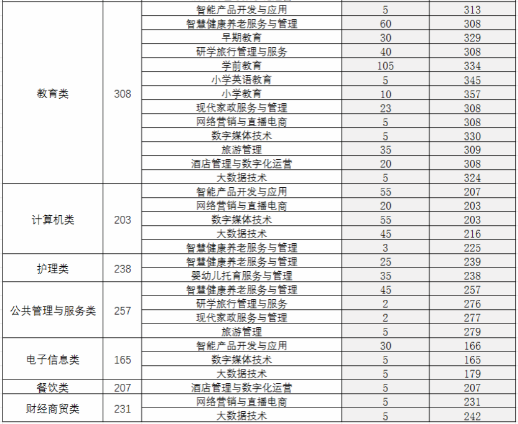 四川幼儿师范高等专科学校2024年高职单招各专业录取分数线:
