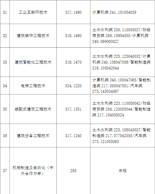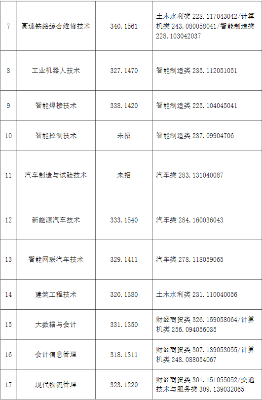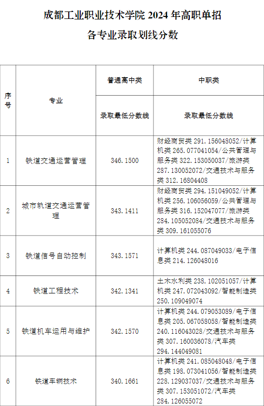 成都工业职业技术学院2024年高职单招各专业最低录取分数:
