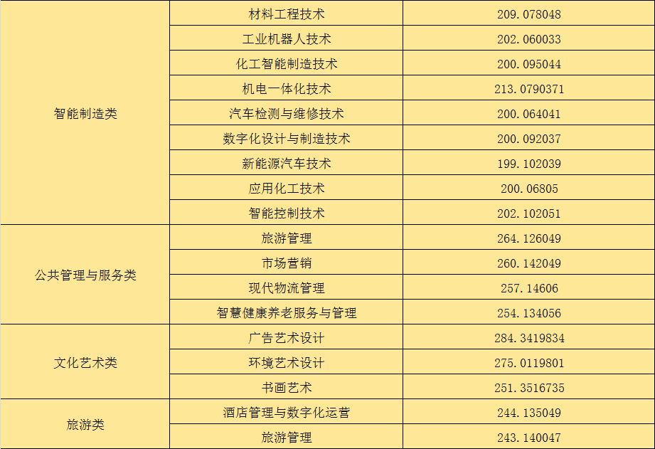 泸州职业技术学院2024年单招分专业分类别最低录取分数线