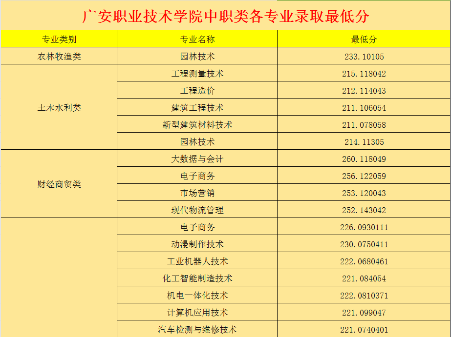 广安职业技术学院2024年单招录取分数线: