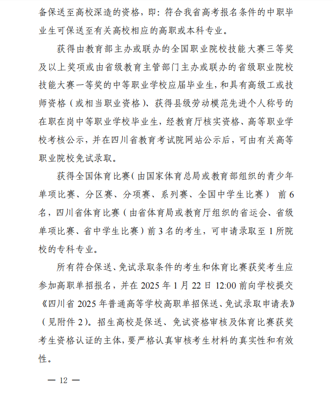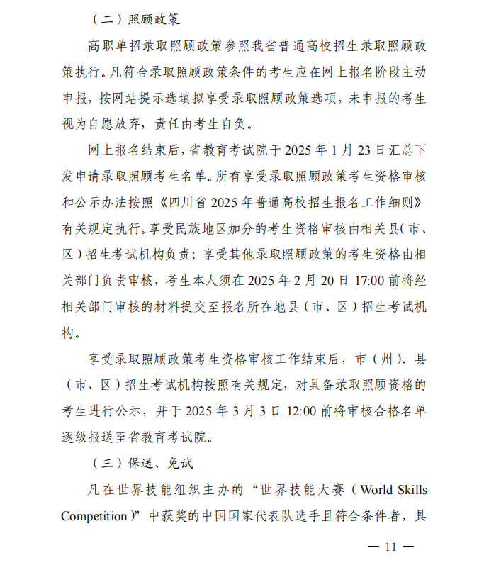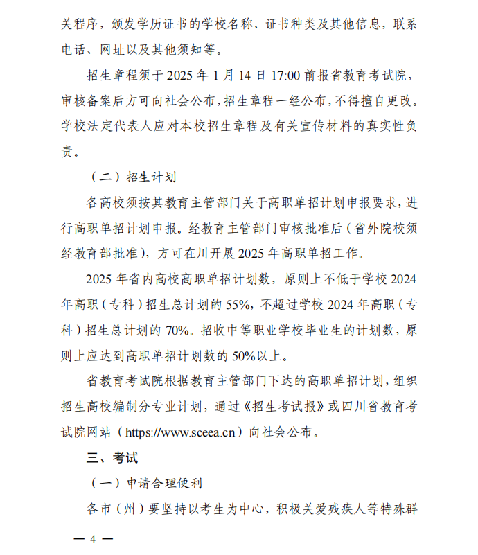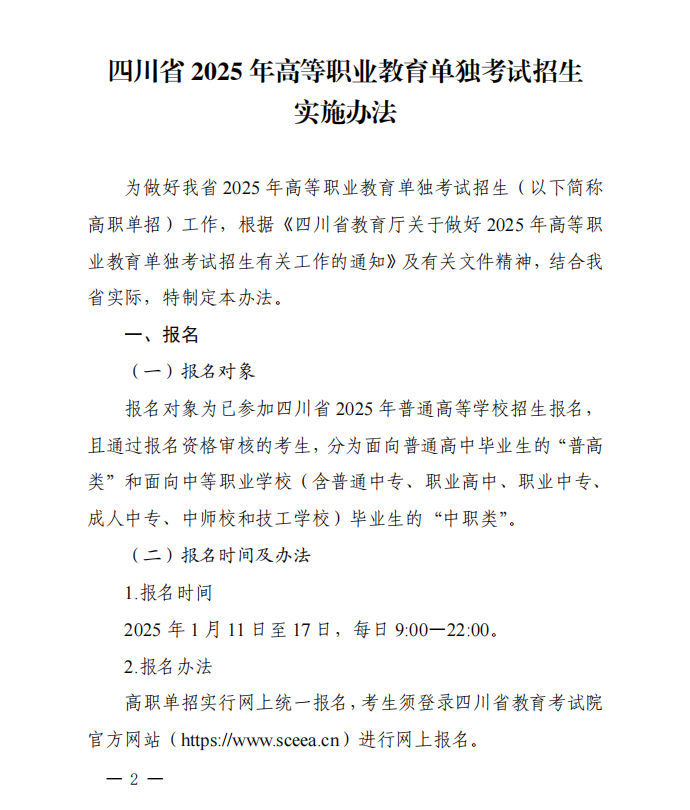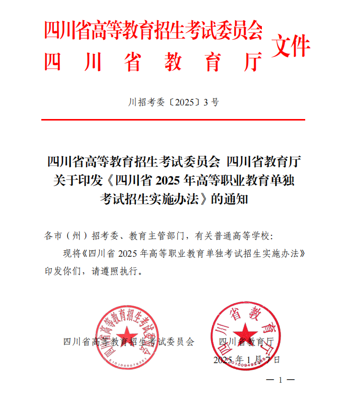 四川省2025年高等职业教育单独考试招生实施办法通知
