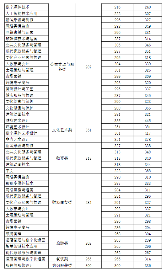 四川文化产业职业学院2025年高职单招各专业录取分数线