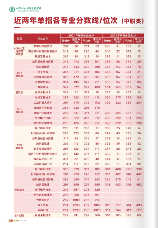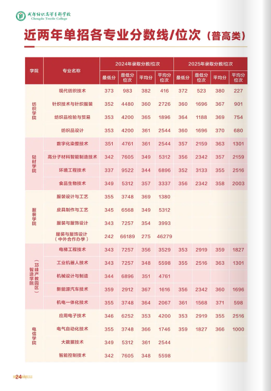 成都纺织高等专科学校2025年高职单招录取分数线