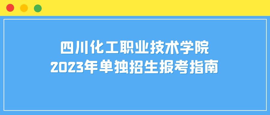 四川化工职业技术学院2023年单独招生报考指南