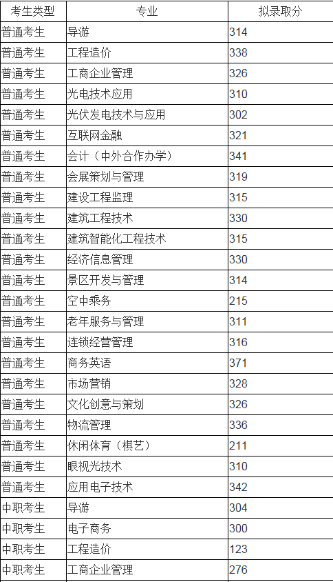宜职院2020年单独招生拟录取控制分数线