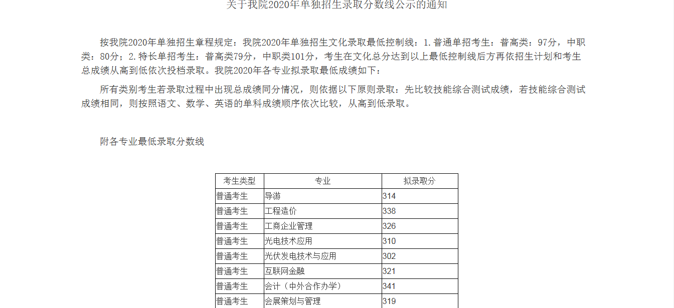 成都职业技术学院2020年单招最低调档线