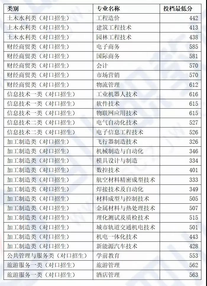 四川省2019年成都航空职业技术学院对口高职调档录取线