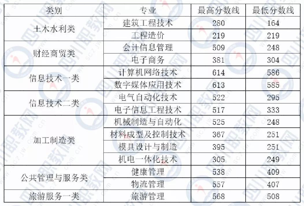 四川省2019年机电职业技术学院对口高职调档录取线
