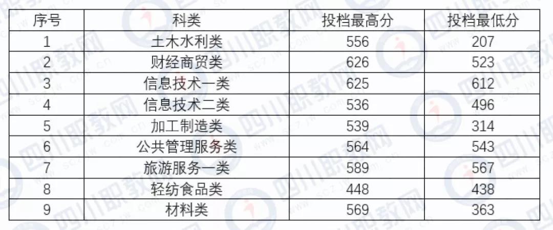 四川省2019年成都农业科技职业学院对口高职调档录取线