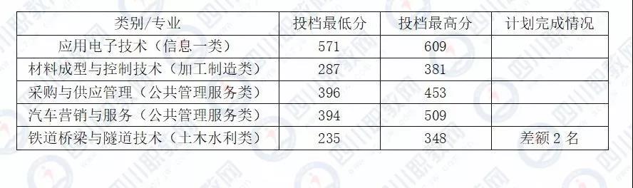 四川省2019年成都工贸职业技术学院对口高职调档录取线