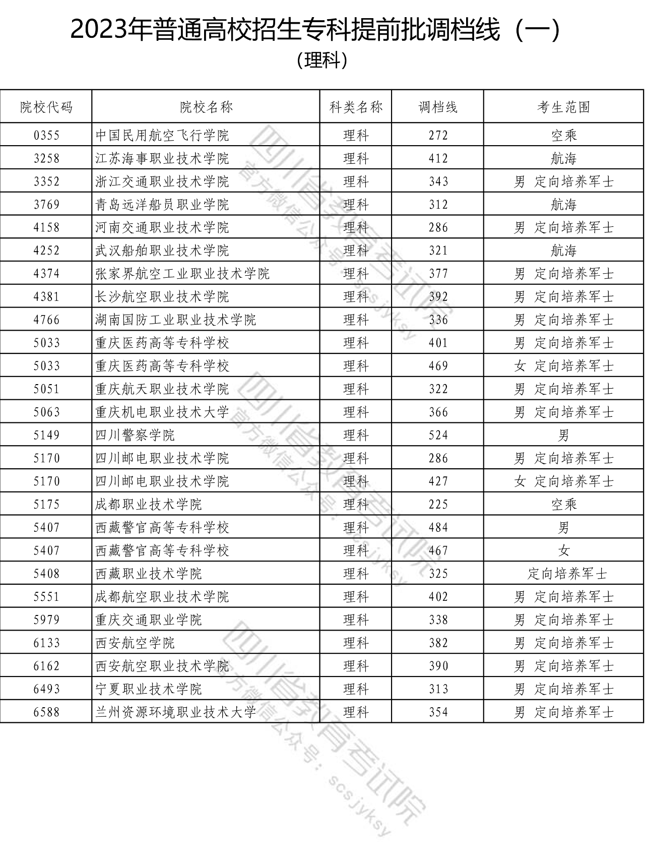 重磅!2023年普通高校在川招生专科提前批院校调档线(一)出炉!
