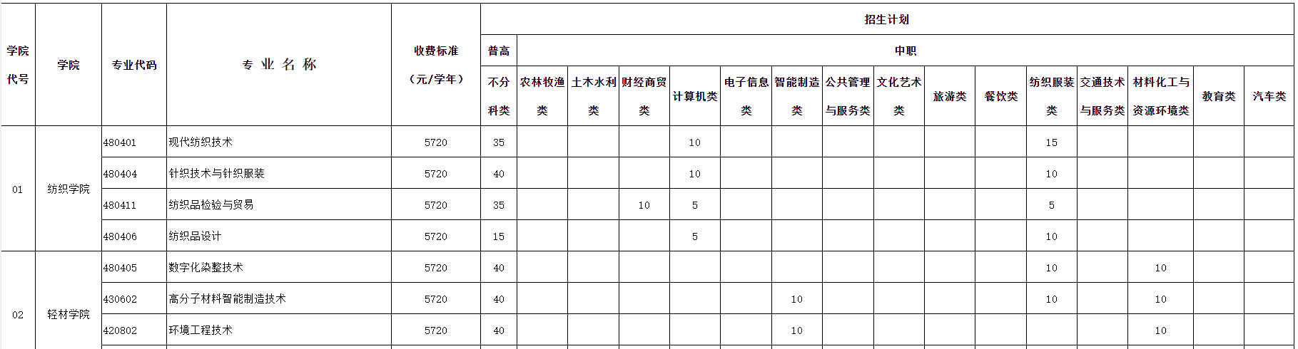 成都纺织高等专科学校24年单招计划!