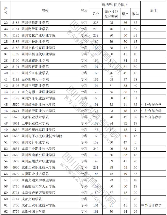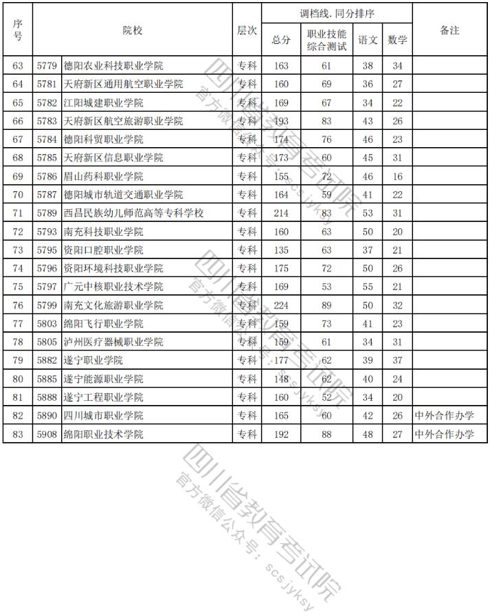 2024年四川高职单招中职类(护理类)调档录取线汇总