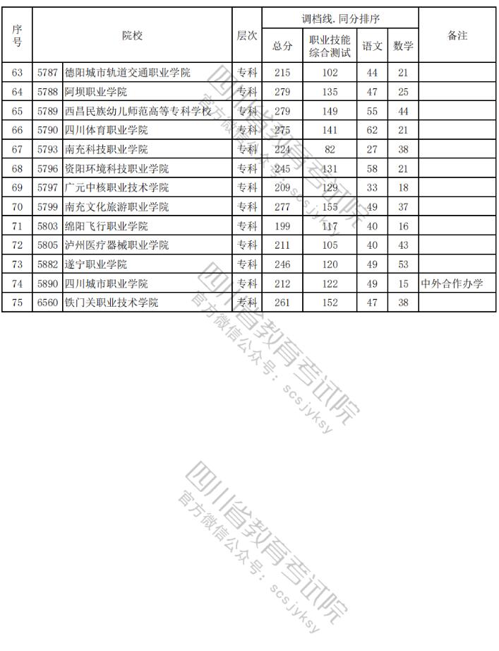 2024年四川高职单招中职类(教育类)院校调档分数线