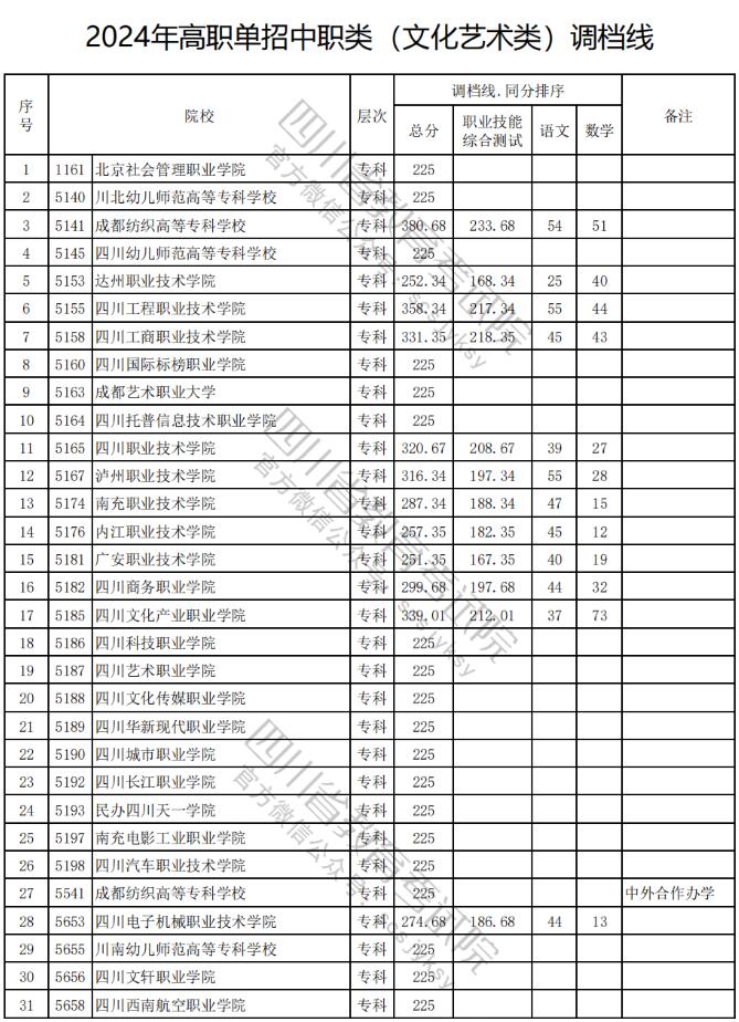 2024年四川高职单招中职(文化艺术类)单招院校最低录取分数线