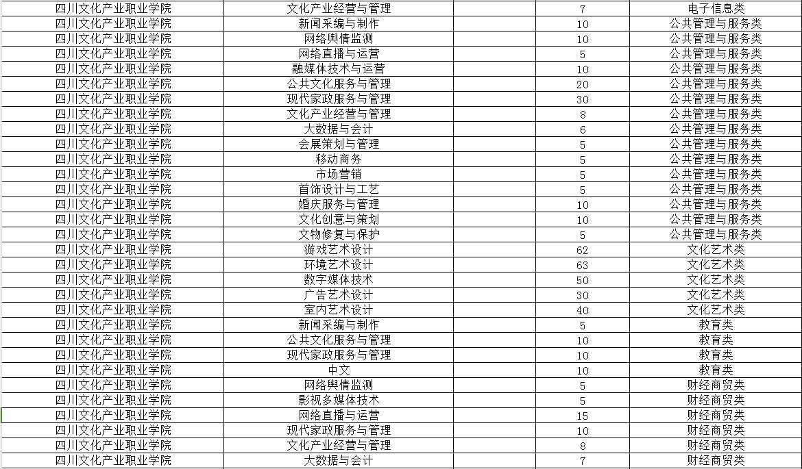 四川文化产业职业学院2024年单招专业及计划