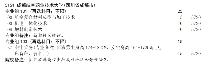 成都航空职业技术大学2025年普通高校招生专科层次补录专业计划