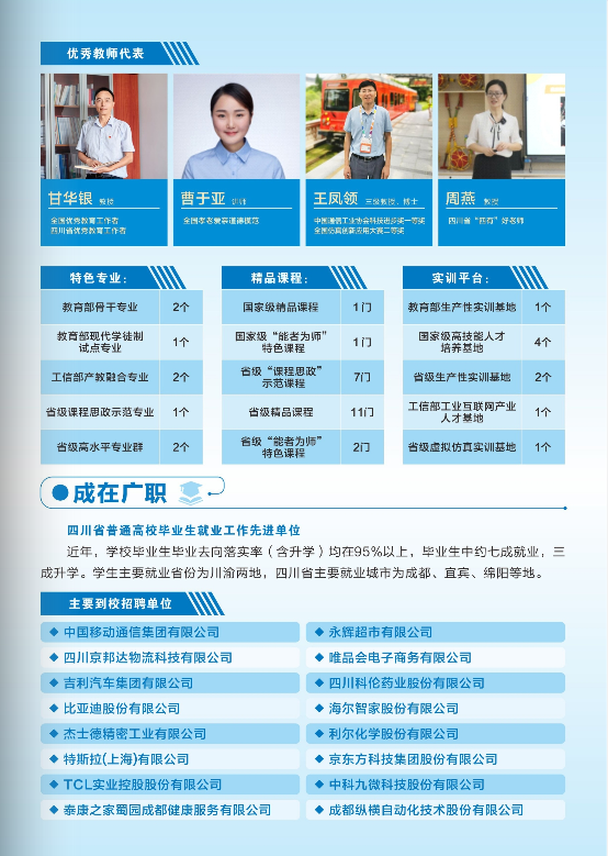 学校概况四川幼儿师范高等专科学校是2009年经教育部批准设立的公办全日制普通高等专科学校,是西南地区第一所以培养幼儿、小学教育师资为主的高校,位于四川绵阳。学校现有绵阳、江油三个校区,占地近850亩,建筑面积31.7万平方米,在校生10160余人。教职工756人,其中副教授以上145人,硕博士289人。开设25个专业,涵盖学前