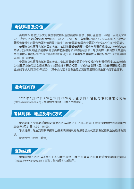 根据工作安排,预计4月2日17:00考生可以开始查询成绩。届时,可通过以下渠道查询:1.四川省教育厅官方网站:https://edu.sc.gov.cn;2.四川省教育厅微信公众号:“四川教育发布”;3.四川省教育考试院官方网站:https://www.sceea.cn;4.四川省教育考试院微信公众号:“四川省教育考试院”;5.四川省招生考试指导中心